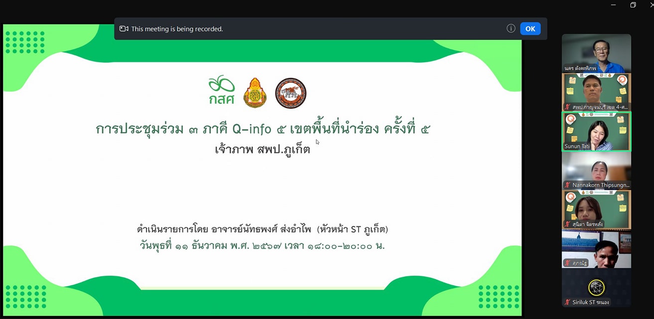 วันที่ 11 ธันวาคม พ.ศ.2567 เวลา 18.00 - 20.00 น. นายบรรพจน์ ทัพซ้าย รองผู้อำนวยการสพป.กาญจนบุรี เขต 4 รักษาราชการแทนผู้อำนวยการสพป.กาญจนบุรี เขต 4 มอบหมายให้ นายไพฑูรย์ ประดิษฐพงษ์ และนายคมสรร วิเศษสิงห์ ศึกษานิเทศก์ เข้าร่วมการประชุมร่วมระหว่างคณะทำงานเขตพื้นที่และคณะทำงานสนับสนุนเพื่อหารือร่วมกันและสะท้อนผลการดำเนินงานในพื้นที่ปฏิบัติงาน ภายใต้โครงการส่งเสริมการใช้สารสนเทศคุณภาพ (Q-Info) สำหรับโรงเรียนและศึกษาแนวทางการพัฒนาระบบสำหรับสำนักงานเขตพื้นที่การศึกษา สังกัด สพฐ. พื้นที่ต้นแบบนำร่อง 5 เขตพื้นที่ ผ่านระบบ Zoom Meeting