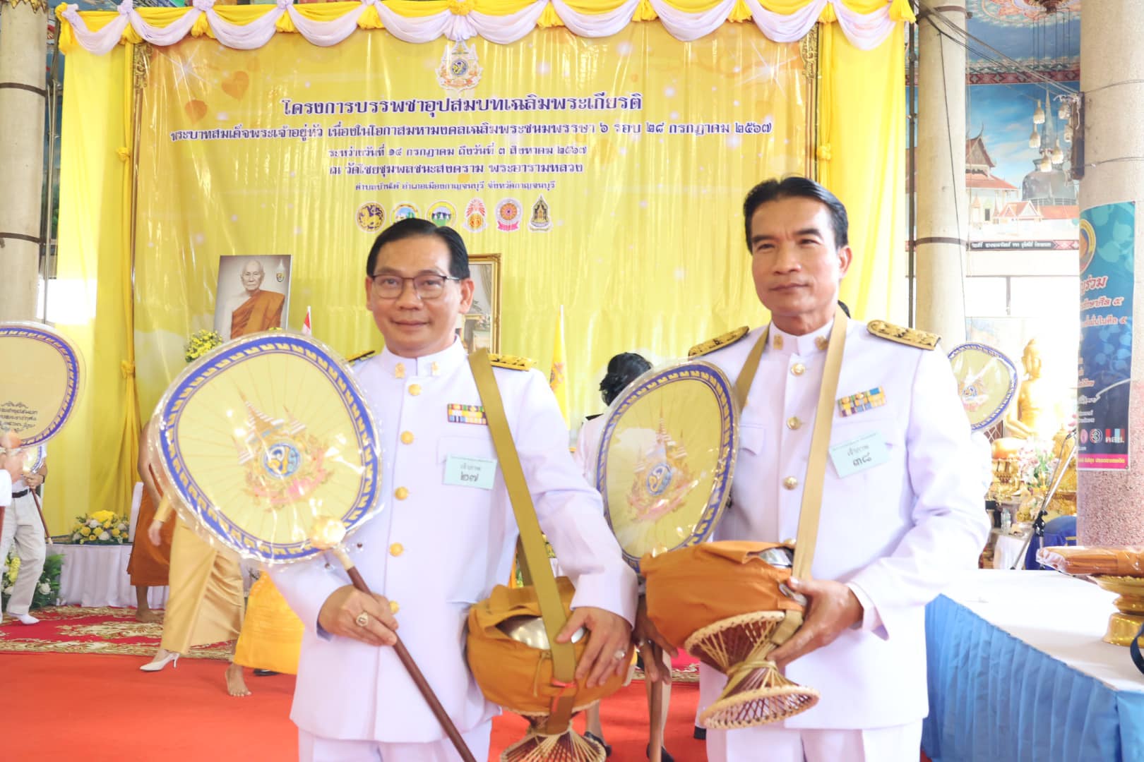 วันที่ 14 กรกฎาคม 2567 เวลา 08.30 น. ดร.วิโรจน์ ค้อไผ่ ผู้อำนวยการสำนักงานเขตพื้นที่การศึกษาประถมศึกษากาญจนบุรี เขต 4 พร้อมด้วย นายบรรพจน์ ทัพซ้าย และ ดร.ประภาส กองจันทร์ รองผู้อำนวยการสำนักงานเขตพื้นที่การศึกษาประถมศึกษากาญจนบุรี เขต 4 และบุคลากรกลุ่มอำนวยการ ร่วมพิธีบรรพชา โครงการบรรพชาอุปสมบทเฉลิมพระเกียรติ พระบาทสมเด็จพระเจ้าอยู่หัว เนื่องในโอกาสพระราชพิธีมหามงคลเฉลิมพระชนมพรรษา 6 รอบ 28 กรกฎาคม 2567 ณ วัดไชยชุมพลชนะสงคราม อำเภอเมืองกาญจนบุรี จังหวัดกาญจนบุรี