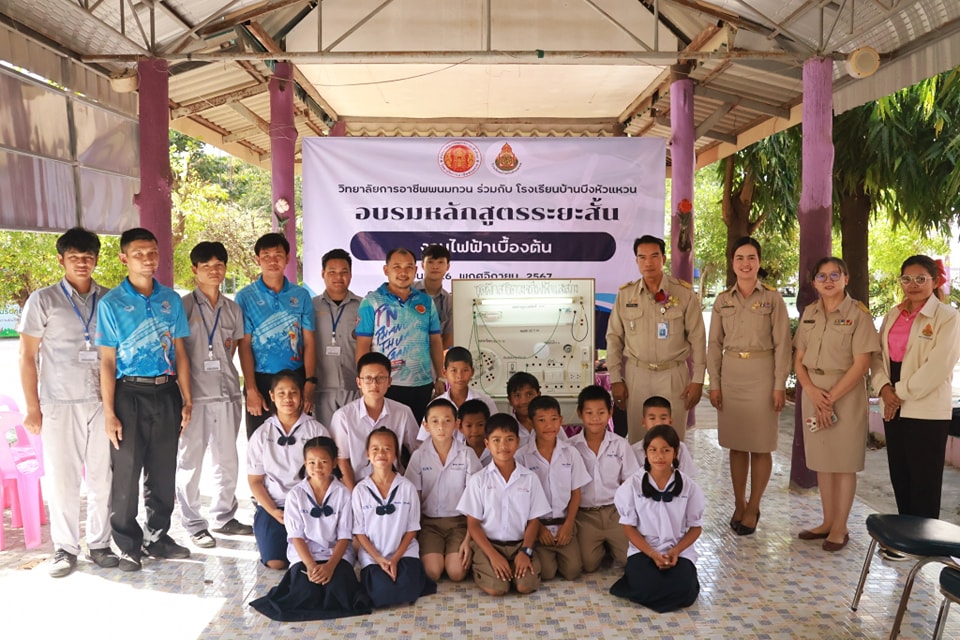 วันที่ 26 พฤศจิกายน 2567 นายบรรพจน์ ทัพซ้าย รองผู้อำนวยการ สพป.กาญจนบุรี เขต 4 รักษาราชการแทน ผู้อำนวยการ สพป.กาญจนบุรี เขต 4 พร้อมด้วย นางสาวศนิษฐา อมรพรหมภักดี ผู้อำนวยการกลุ่มส่งเสริมการจัดการศึกษา นางสาวจิตติยา สุกหอม นักวิชาการศึกษาปฏิบัติการ เข้าเยี่ยมชมและให้กำลังใจนักเรียนโรงเรียนบ้านบึงหัวแหวนในการฝึกอบรมหลักสูตรระยะสั้น งานไฟฟ้าเบื้องต้น โดยวิทยาลัยการอาชีพพนมทวน ณ โรงเรียนบ้านบึงหัวแหวน ตำบลบ่อพลอย อำเภอบ่อพลอย จังหวัดกาญจนบุรี