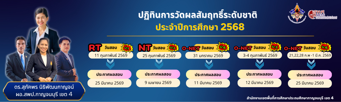 สพป.กาญจนบุรี เขต 4 ออกแบบและพัฒนาโดย กลุ่มส่งเสริมการศึกษาทางไกล เทคโนโลยีสารสนเทศและการสื่อสาร