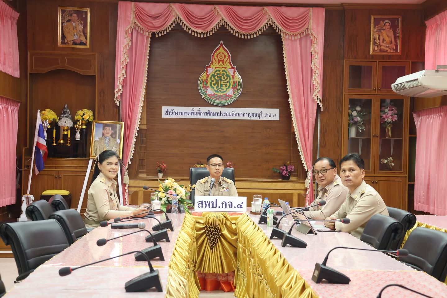 วันที่ 10 กุมภาพันธ์ 2568 เวลา 9.00-12.00 น. นายโชติวัฒน์ โชติวัฒนภักดิ์ ผู้อำนวยการ สพป.กาญจนบุรี เขต 4 พร้อมด้วย ดร.ประภาส กองจันทร์ รองผู้อำนวยการ สพป.กาญจนบุรี เขต 4 นางสาวสัทธา สืบดา ผู้อำนวยการกลุ่มนิเทศติดตามและประเมินผลการจัดการศึกษา นายจักรกฤษ อำพันทอง ผู้อำนวยการกลุ่มนโยบายและแผน นายไพฑูรย์ ประดิษฐพงษ์ นางวันวิสา ศรีคูบัว ศึกษานิเทศก์ และครูแกนนำความฉลาดรู้ทั้ง 3 โดเมน รวม 27 โรงเรียนในสังกัด เข้าร่วมการประชุมชี้แจงแนวปฏิบัติการใช้ชุดพัฒนาความฉลาดรู้ สำหรับวิชาภาษาไทย วิทยาศาสตร์ และคณิตศาสตร์ ชั้นมัธยมศึกษาปีที่ 3 ปีที่ 4 และระดับปวช.ปี่ที่ 1 โดยมี พลตำรวจเอก เพิ่มพูน ชิดชอบ รัฐมนตรีว่าการกระทรวงศึกษาธิการ เป็นประธานเปิดการประชุม ผ่านระบบ Video Conference ช่อง OBEC Channel ณ ห้องประชุม 1 อาคารมนตริวัต สพป.กาญจนบุรี เขต 4