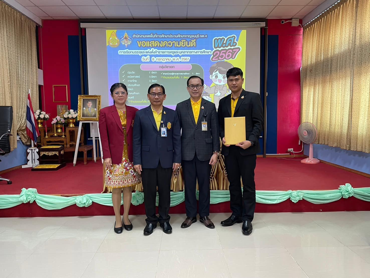 วันที่ 8 กรกฎาคม 2567 เวลา 09.00 น. ดร.วิโรจน์ ค้อไผ่ ผู้อำนวยการสำนักงานเขตพื้นที่การศึกษาประถมศึกษากาญจนบุรี เขต 4 เป็นประธานพิธีการลงนามบันทึกข้อตกลงในการปฏิบัติงานในหน้าที่รองผู้อำนวยการสถานศึกษา และการชี้แจงการประเมินสัมฤทธิผลการปฏิบัติงานในหน้าที่เพื่อพัฒนาการศึกษา เป็นระยะเวลา 1 ปี โดยมี ดร.เชาวรินทร์ แก้วพรม รองผู้อำนวยการสำนักงานเขตพื้นที่การศึกษาประถมศึกษากาญจนบุรี เขต 4 ผู้อำนวยการกลุ่ม/หน่วย และบุคลากรกลุ่มบริหารงานบุคคล เข้าร่วม ในการนี้ มีผู้ลงนามบันทึกข้อตกลงฯ จำนวนทั้งสิ้น 1 ราย ได้แก่ นายกรวัฒน์ ภูฆัง รองผู้อำนวยการโรงเรียนบ้านหนองขอน ณ ห้องประชุม 2 อาคารโพธิ์งาม สพป.กาญจนบุรี เขต 4