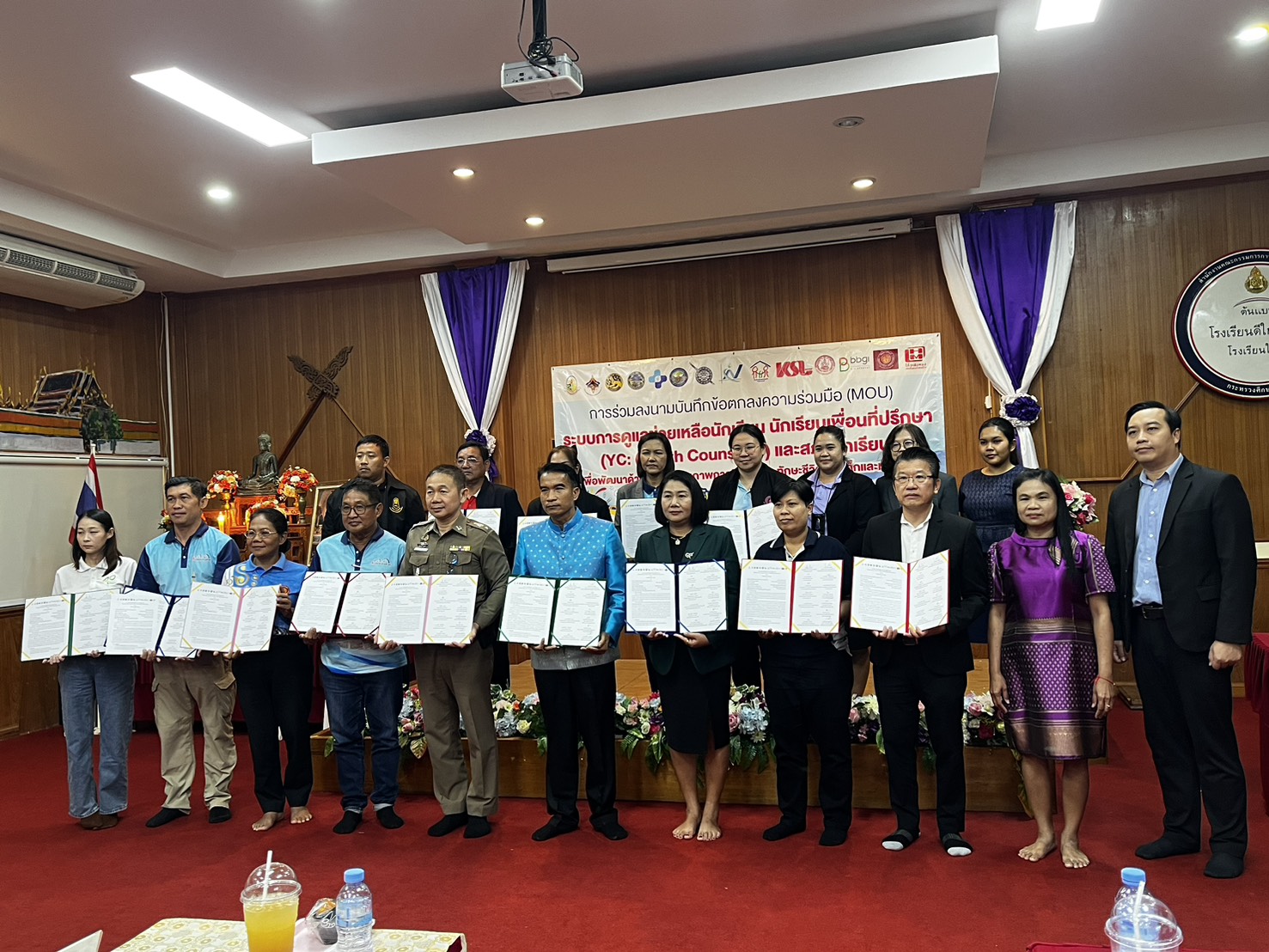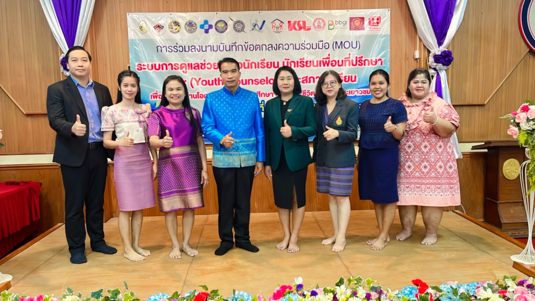 วันที่ 14 มีนาคม 2568 นายโชติวัฒน์ โชติวัฒนภักดิ์ ผู้อำนวยการ สพป.กาญจนบุรี เขต 4 มอบหมายให้ นายบรรพจน์ ทัพซ้าย รองผู้อำนวยการ สพป.กาญจนบุรี เขต 4 พร้อมด้วย นางสาวศนิษฐา อมรพรหมภักดี ผู้อำนวยการกลุ่มส่งเสริมการจัดการศึกษา และบุคลากรกลุ่มส่งเสริมการจัดการศึกษา สพป.กาญจนบุรี เขต 4 เข้าร่วมลงนามบันทึกข้อตกลงความร่วมมือ (MOU) กับระบบการดูแลช่วยเหลือนักเรียน นักเรียนเพื่อนที่ปรึกษา (YC : Youth Counselor) และสภานักเรียนโรงเรียนชุมชนบ้านหลุมรัง ณ ห้องประชุมโรงเรียนชุมชนบ้านหลุมรัง อำเภอบ่อพลอย จังหวัดกาญจนบุรี