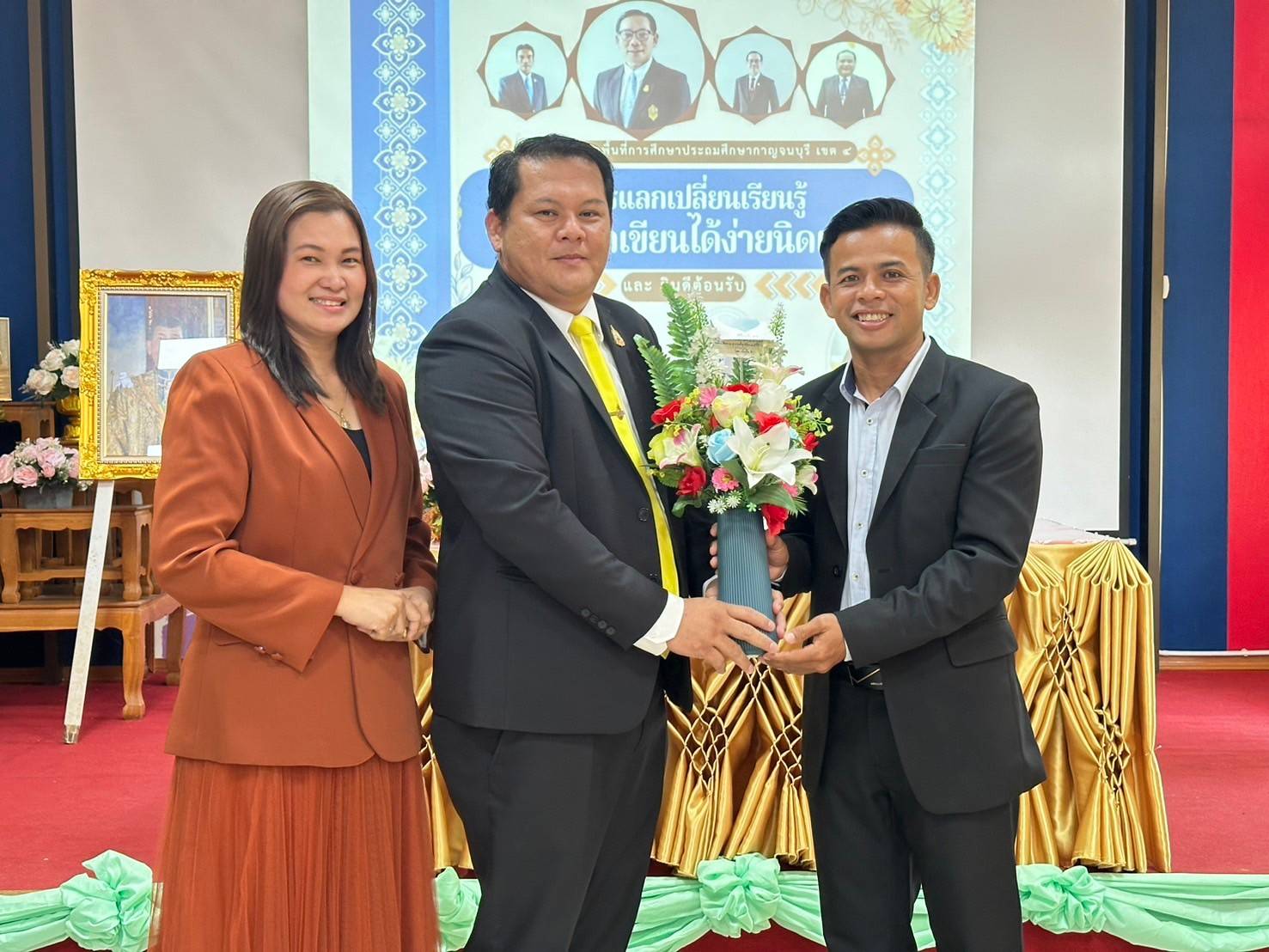 วันที่ 9 พฤษภาคม 2567 นายวิโรจน์ ค้อไผ่ ผู้อำนวยการ สพป.กาญจนบุรี เขต 4 มอบหมายให้นายบรรพจน์ ทัพซ้าย รองผู้อำนวยการ สพป.กาญจนบุรี เขต 4 พร้อมด้วยนางสาวสัทธา สืบดา ผู้อำนวยการกลุ่มนิเทศ ติดตามและประเมินผลฯ เข้าร่วมการประชุมเชิงปฏิบัติการแลกเปลี่ยนเรียนรู้กิจกรรม "อ่านออกเขียนได้ง่ายนิดเดียว" ปีการศึกษา 2567 และร่วมแสดงความยินดีต้อนรับศึกษานิเทศก์ที่ได้รับบรรจุแต่งตั้ง จำนวน 3 ราย ได้แก่ นางสาวกชพร เขมะนุเชษฐ์, นายคมสรร วิเศษสิงห์ และนางสาวพงษ์ลัดดา แสงจันทร์ โดยมีโรงเรียนบ้านหนองสาหร่าย, โรงเรียนบ้านทุ่งโป่งและโรงเรียนบ้านหนองม่วง เข้าร่วมการแลกเปลี่ยนเรียนรู้ ณ ห้องประชุม 2 สพป.กาญจนบุรี เขต 4