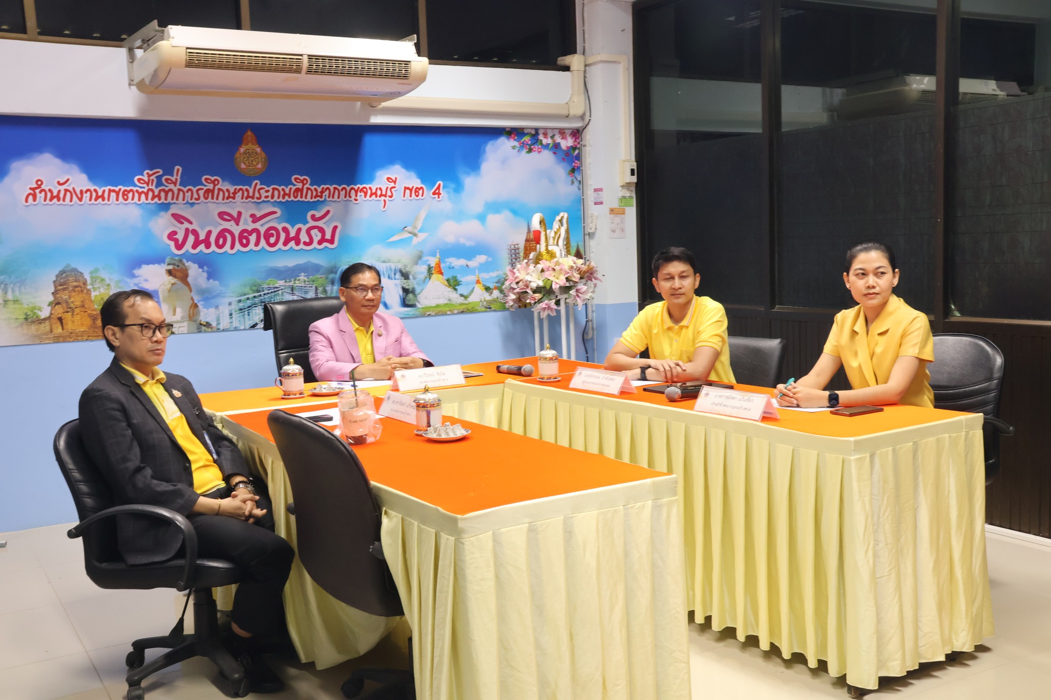 วันที่ 2 กันยายน 2567 เวลา 13.00 น. ดร.วิโรจน์ ค้อไผ่ ผู้อำนวยการสำนักงานเขตพื้นที่การศึกษาประถมศึกษากาญจนบุรี เขต 4 พร้อมด้วย ดร.เชาวรินทร์ แก้วพรหม รองผู้อำนวยการสำนักงานเขตพื้นที่การศึกษาประถมศึกษากาญจนบุรี เขต 4 นายจักรกฤษ อำพันทอง ผู้อำนวยการกลุ่มนโยบายและแผน และเจ้าหน้าที่ สำนักงานเขตพื้นที่การศึกษาประถมศึกษากาญจนบุรี เขต 4 เข้าร่วมประชุมติดตามความก้าวหน้าการดำเนินโครงการสุขาดี มีความสุข โดยมี ว่าที่ร้อยตรี ธนุ วงษ์จินดา เลขาธิการ กพฐ. เป็นประธานการประชุม ผ่านระบบ Zoom Meeting ณ ห้องประชุม 3 อาคารโพธิ์งาม สำนักงานเขตพื้นที่การศึกษาประถมศึกษากาญจนบุรี เขต 4