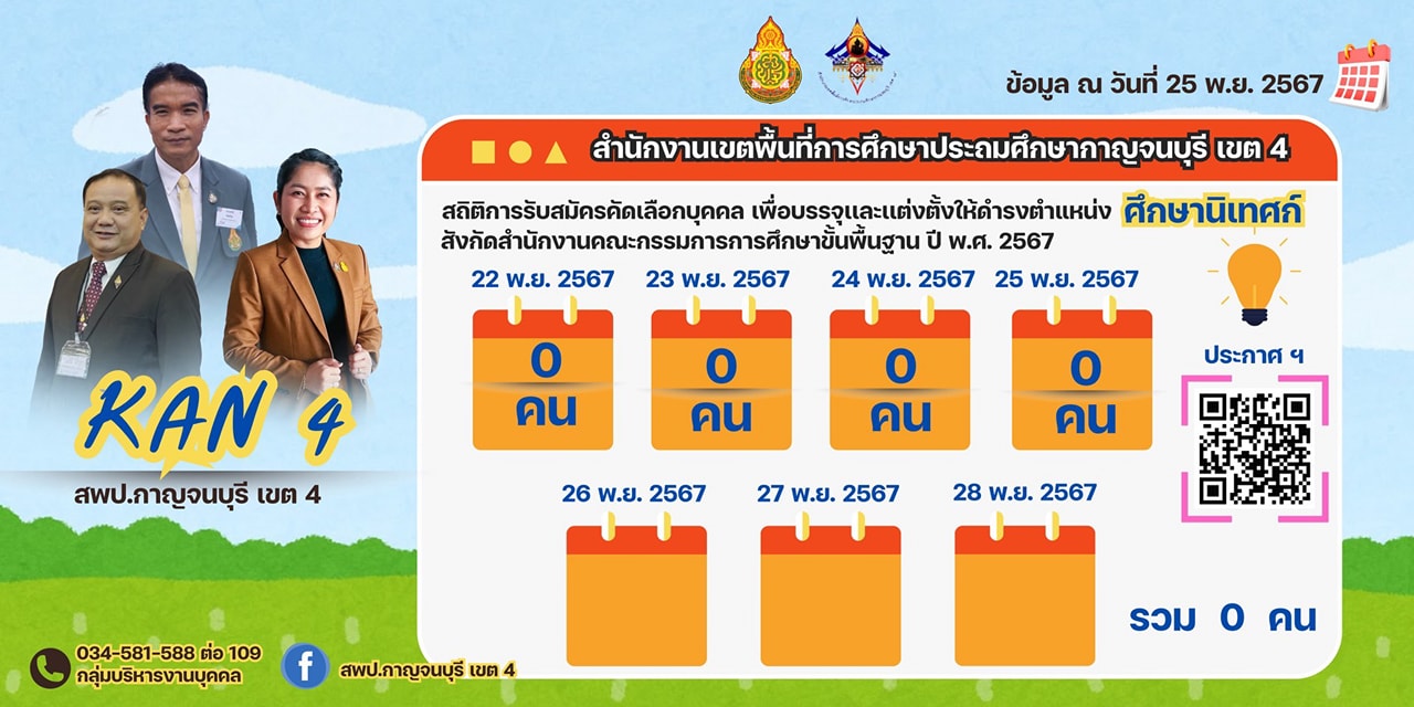 สพป.กาญจนบุรี เขต 4 ออกแบบและพัฒนาโดย กลุ่มส่งเสริมการศึกษาทางไกล เทคโนโลยีสารสนเทศและการสื่อสาร